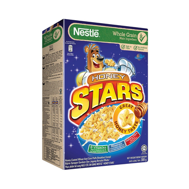 Star-shaped honey whole grain wheat and corn cereal with whole grain as its main ingredient. Contains dietary fibre (to keep your children fuller f...